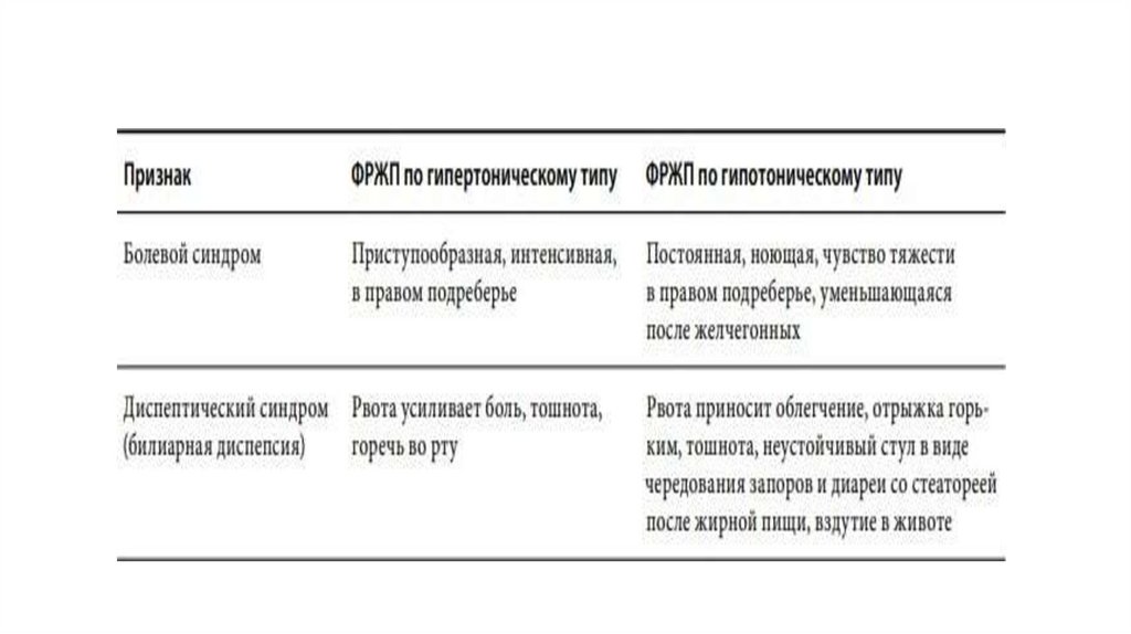 * При дисфункции ЖП по гипотоническому типу пища должнасодержать достаточное количество растительного жира (до 80