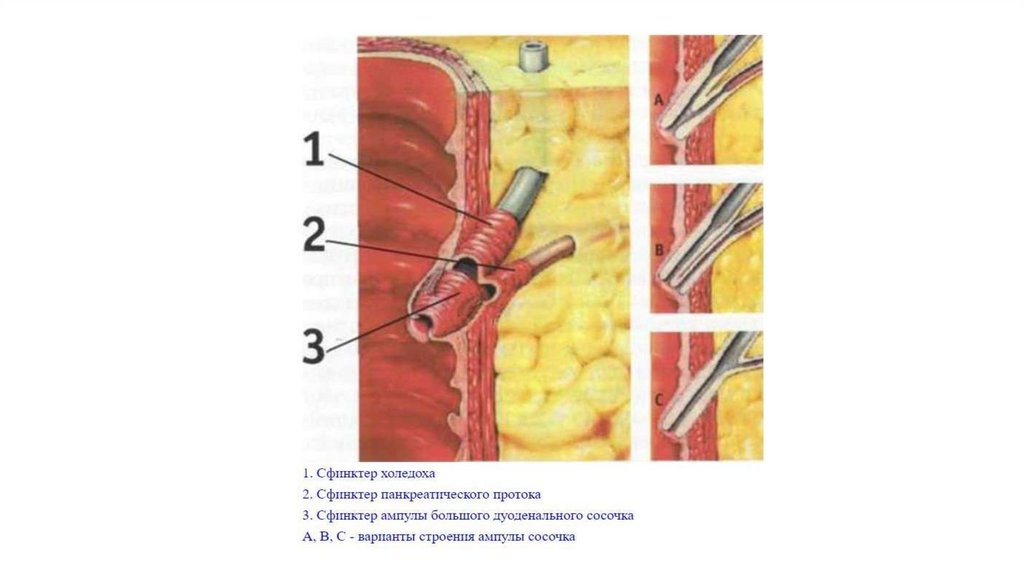 проток; сфинктер ампулы (сфинктер Бойдена),