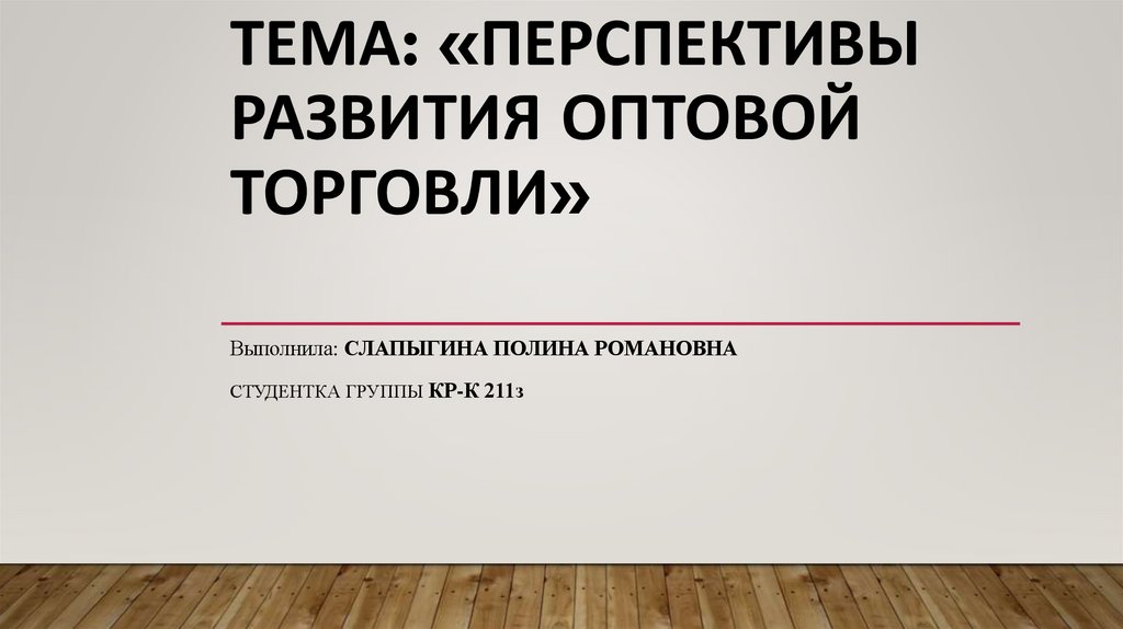 1. ТЕМА: «Перспективы развития оптовой торговли»