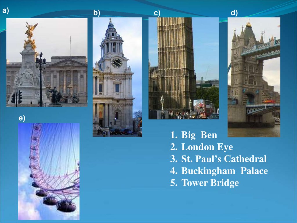 Watch the film about London and tryto remember its famous places of