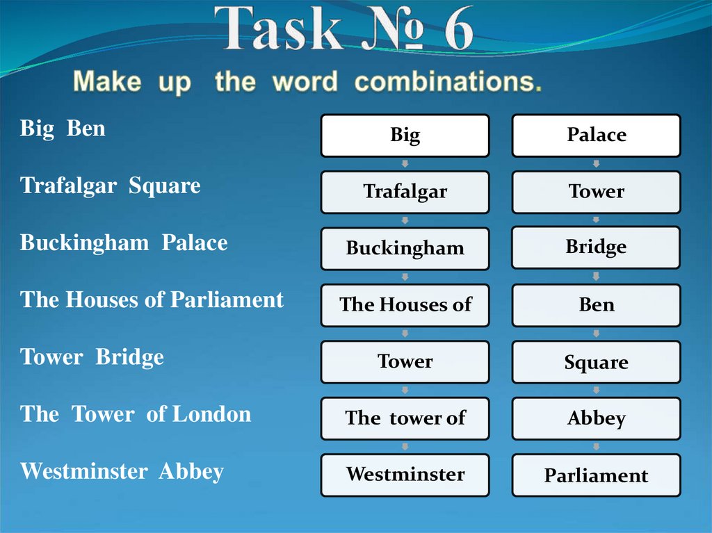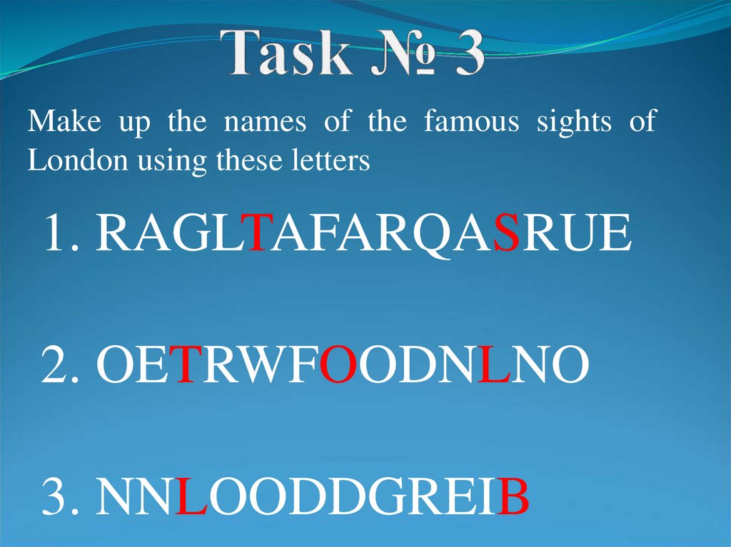 Make up the names of the famous sights ofLondon using these letters