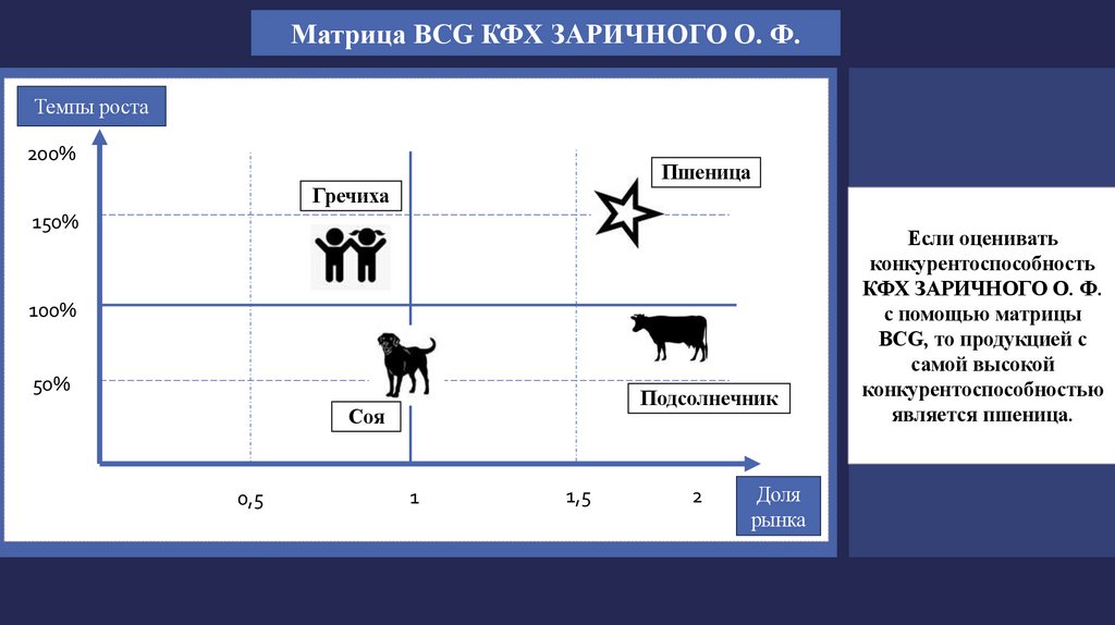 Матрица BCG КФХ ЗАРИЧНОГО О. Ф.Темпы роста