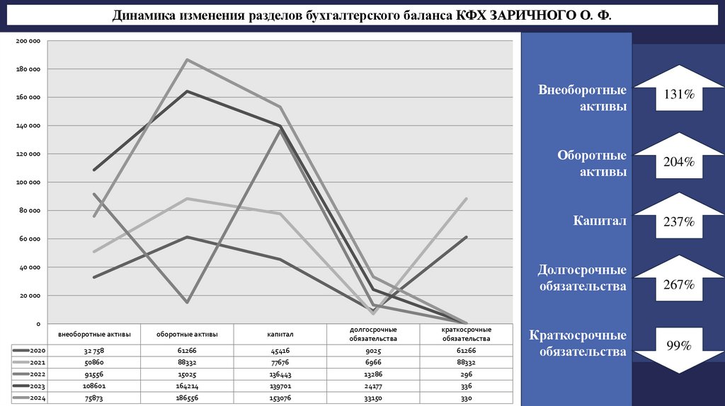 Динамика изменения разделов бухгалтерского баланса КФХ ЗАРИЧНОГО О. Ф.200 000