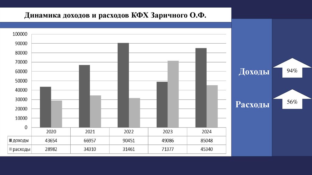 Посчитав прогноз показателей операционной эффективности КФХ ЗАРИЧНОГО