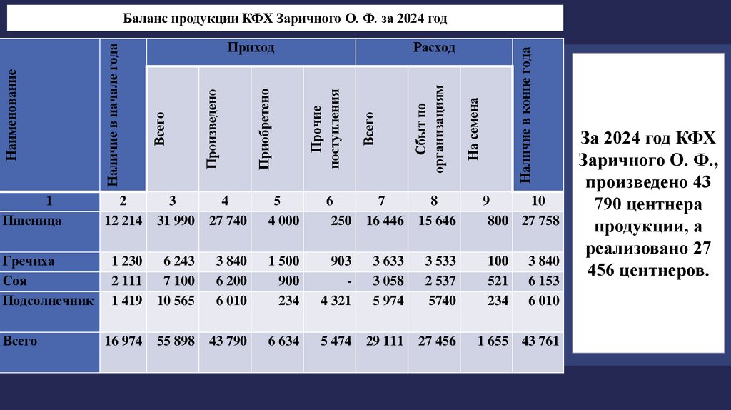культур, выращиваемых КФХ ЗАРИЧНОГО О. Ф. Встречи
