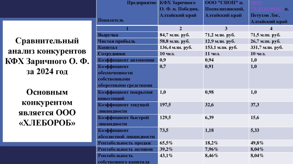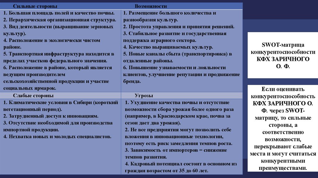 3. Целью исследования является разработка рекомендаций по повышению уровня конкурентоспособности КФХ ЗАРИЧНОГО О. Ф. Задачи