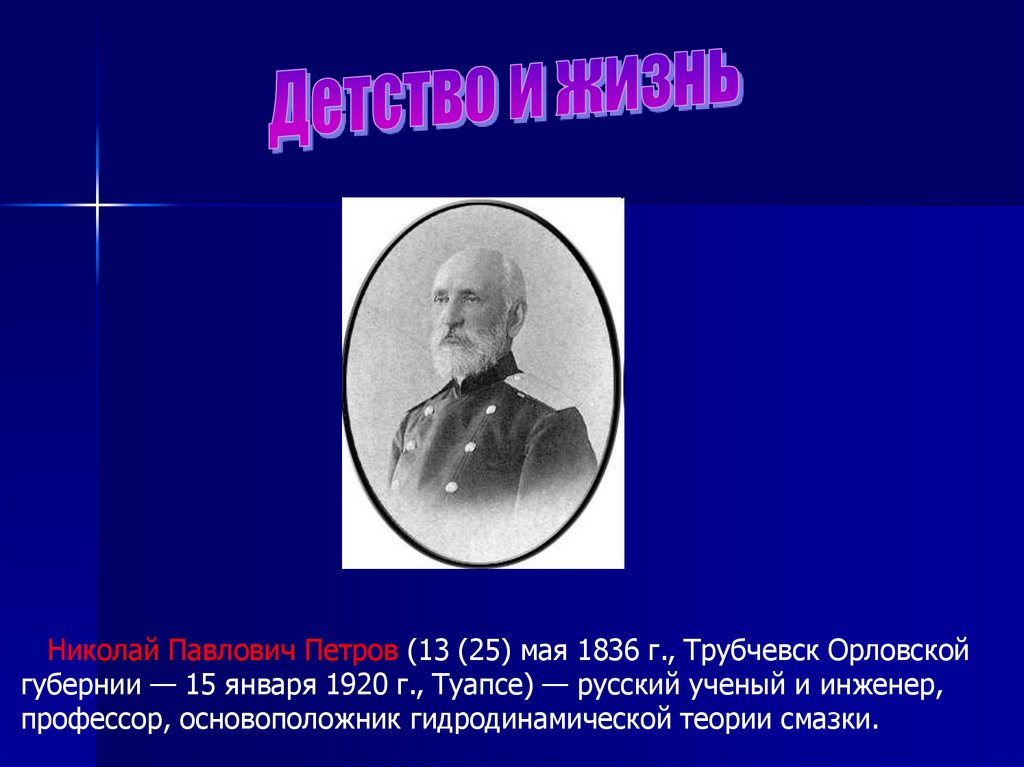 Николай Павлович Петров (13 (25) мая 1836 г., Трубчевск Орловскойгубернии — 15 января 1920 г., Туапсе) — русский ученый и инженер,