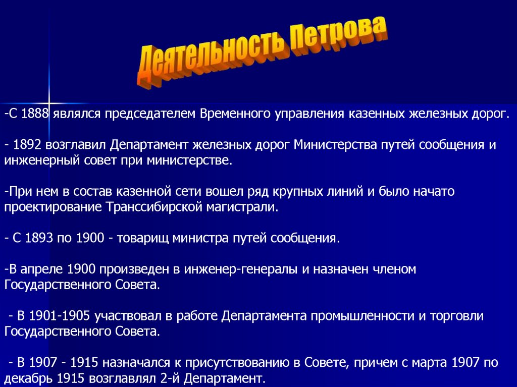 - Деятельность Петрова.