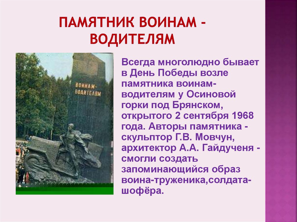 года. Авторы памятника скульптор Г.В. Мовчун,