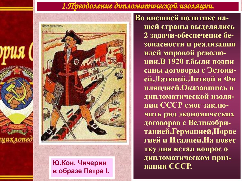 1.Преодоление дипломатической изоляции.Ю.Кон. Чичерин