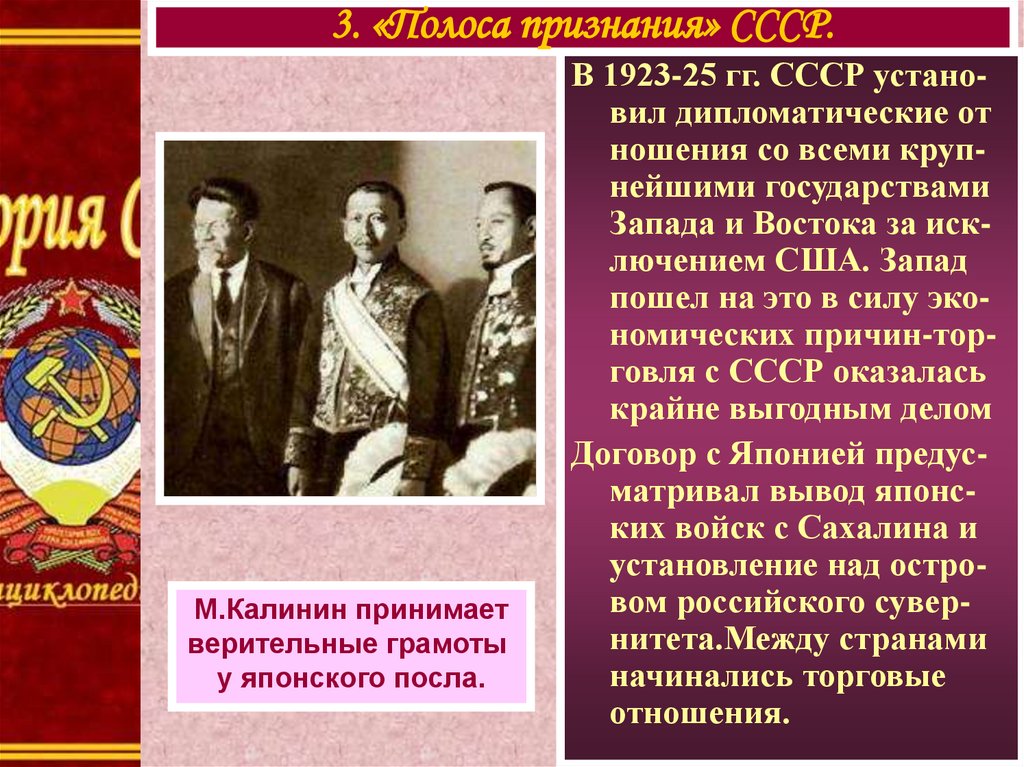 3. «Полоса признания» СССР.М.Калинин принимает