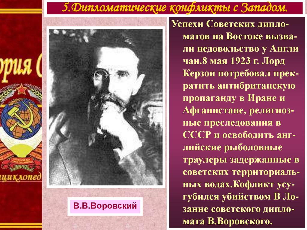5.Дипломатические конфликты с Западом.В.В.Воровский