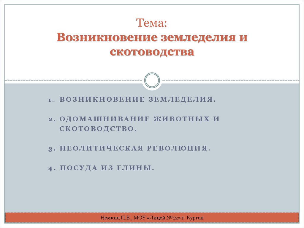 1. Тема: Возникновение земледелия и скотоводства
