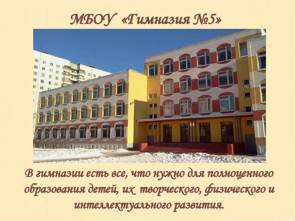 МБОУ «Гимназия №5»В гимназии есть все, что нужно для полноценного
