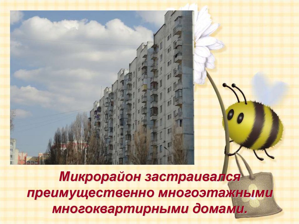 Микрорайон застраивалсяпреимущественно многоэтажными