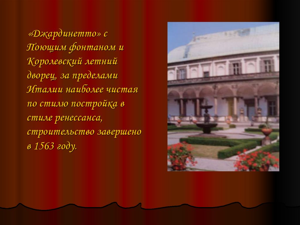 представляют, например, Королевский сад с Королевским летним дворцом, далее