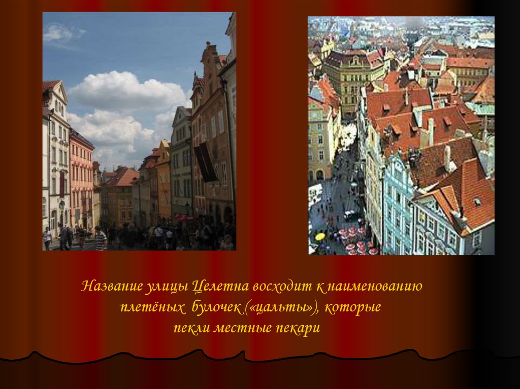 Название улицы Целетна восходит к наименованиюплетёных булочек («цальты»), которые