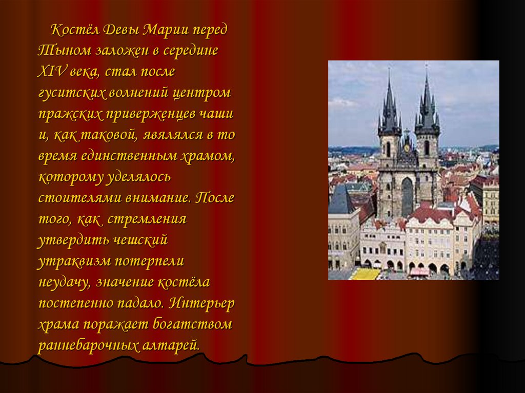 достопримечательности, как костёл Девы Марии перед Тыном, Вифлеемская