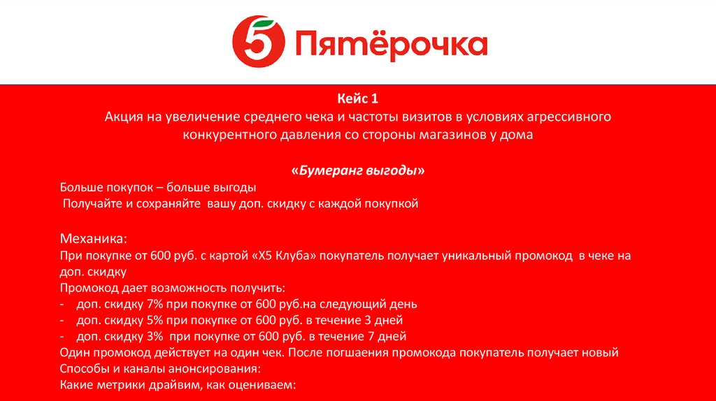 Кейс 1Акция на увеличение среднего чека и частоты визитов в условиях агрессивного