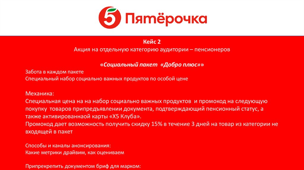 Кейс 2Акция на отдельную категорию аудитории – пенсионеров