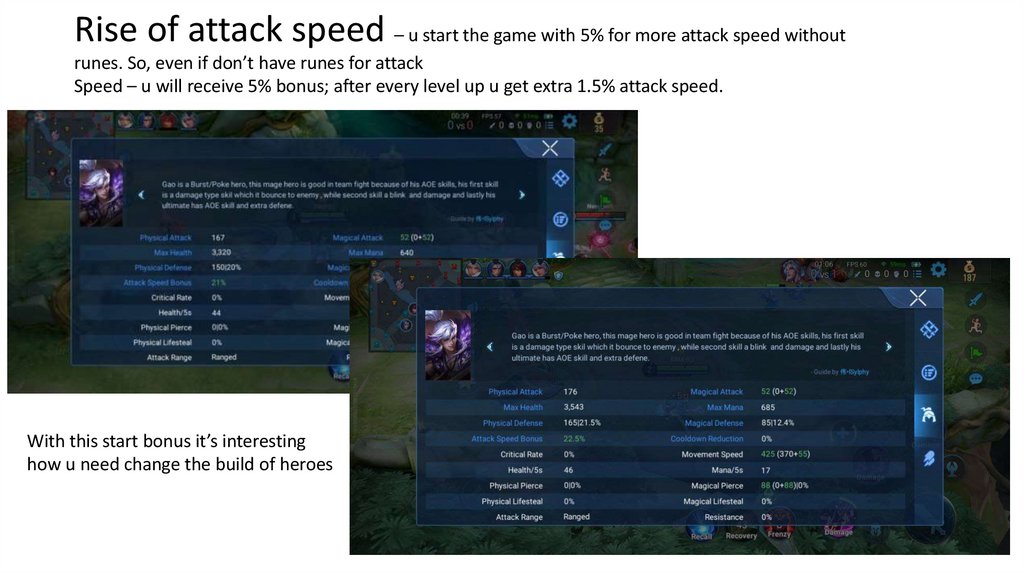Rise of attack speed – u start the game with 5% for more attack speed withoutrunes. So, even if don’t have runes for attack