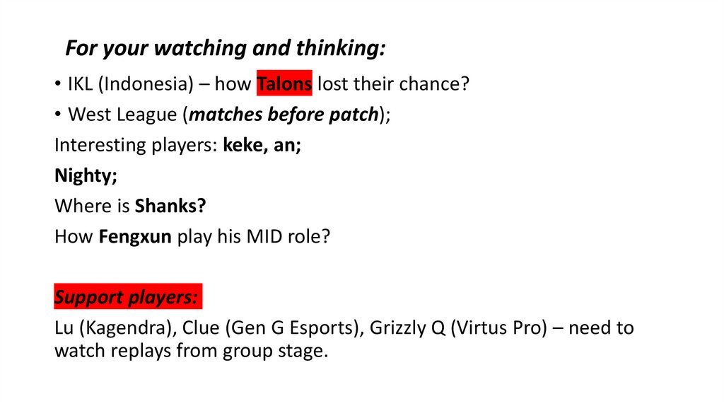For your watching and thinking:• IKL (Indonesia) – paradox of Mid Laner from team BOOM (average