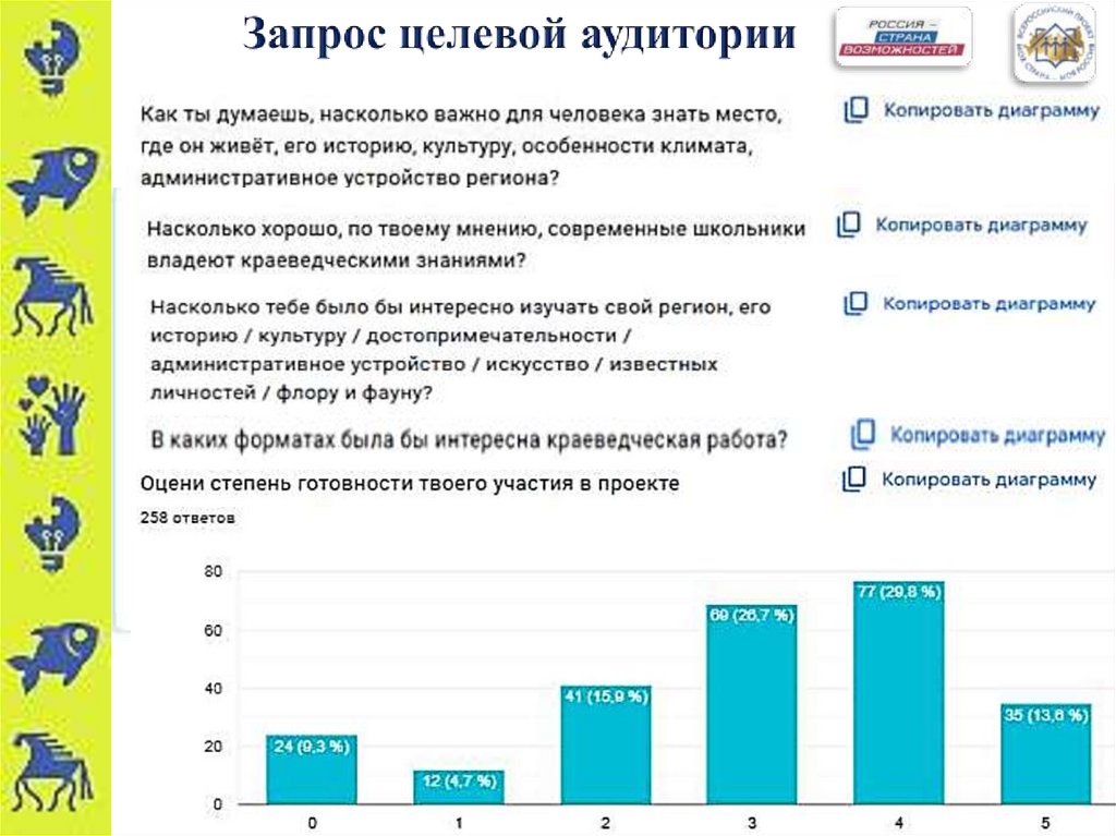 краеведческих знаний, высокая степень готовности участия в проекте);