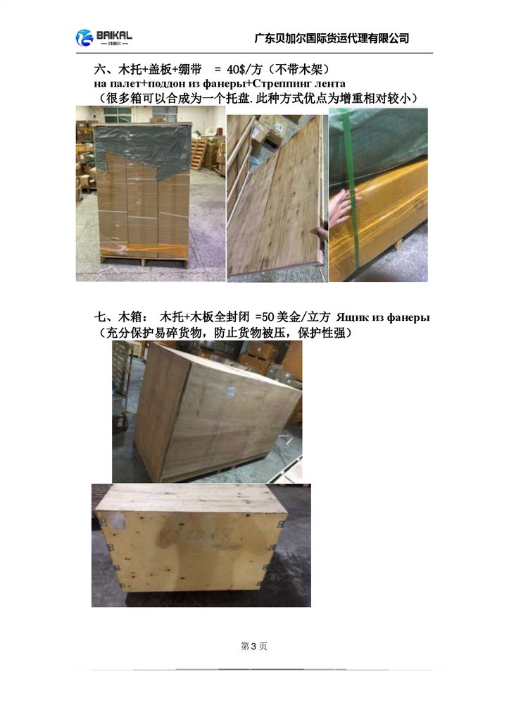 广东贝加尔国际货运代理有限公司六、木托+盖板+绷带 = 40$/方 不带木架