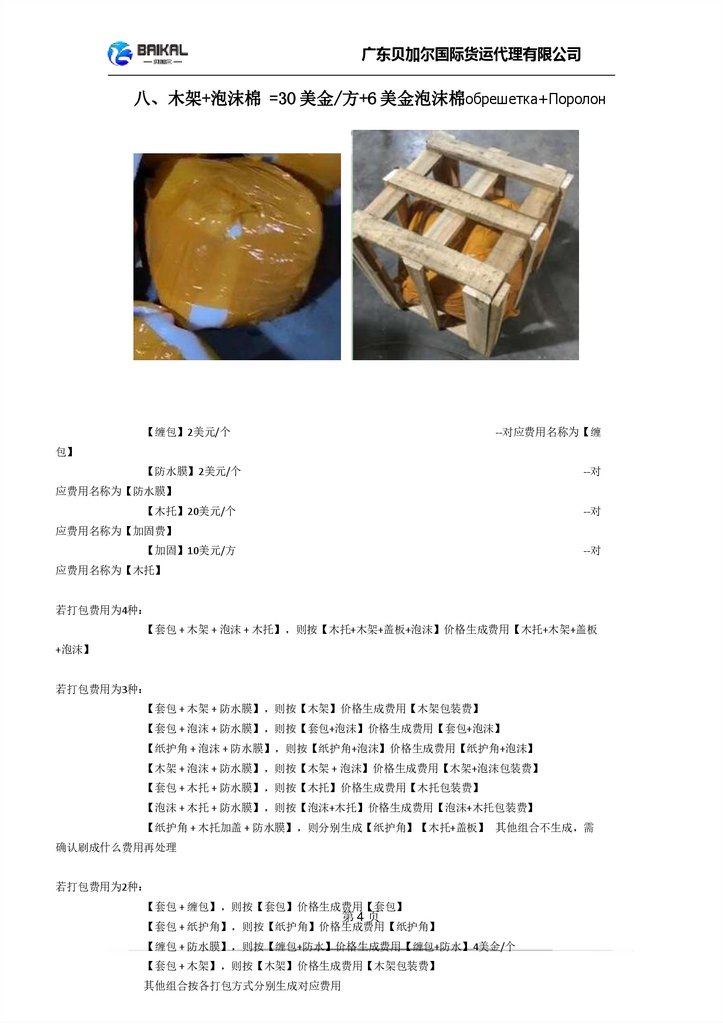 广东贝加尔国际货运代理有限公司八、木架+泡沫棉 =30 美金/方+6 美金泡沫棉обрешетка+Поролон
