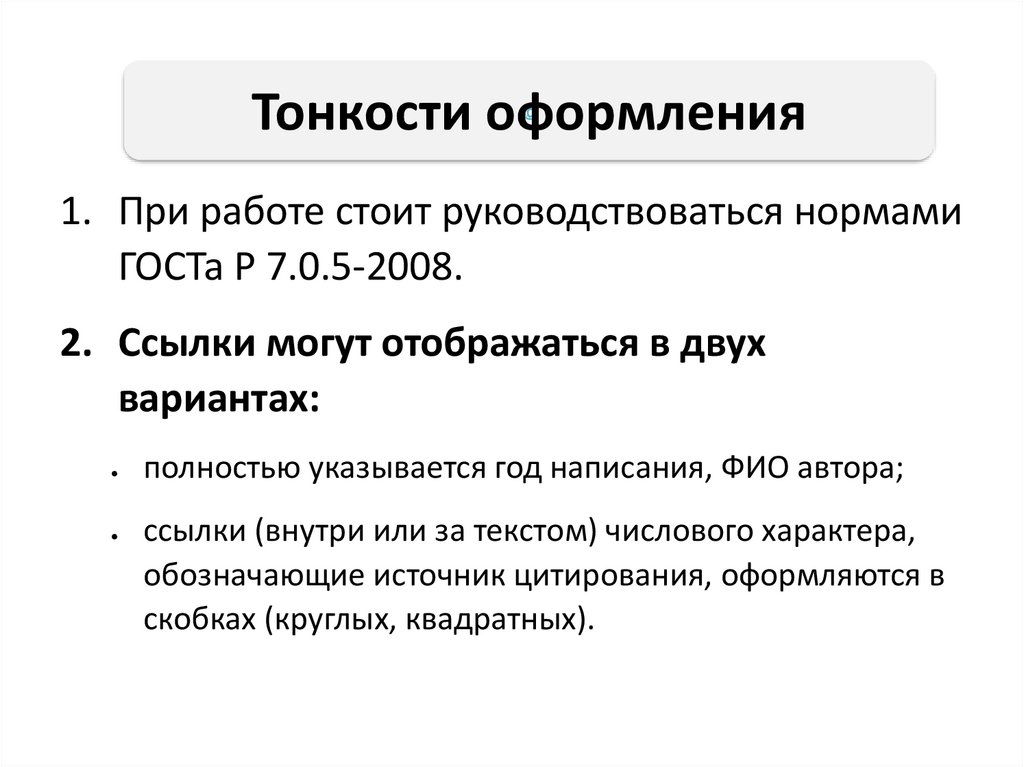 Тонкости оформления1. При работе стоит руководствоваться нормами