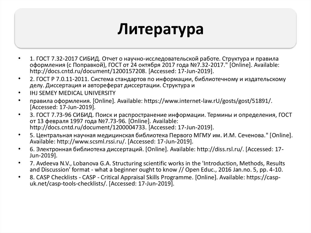 Литература1. ГОСТ 7.32-2017 СИБИД. Отчет о научно-исследовательской работе. Структура и правила
