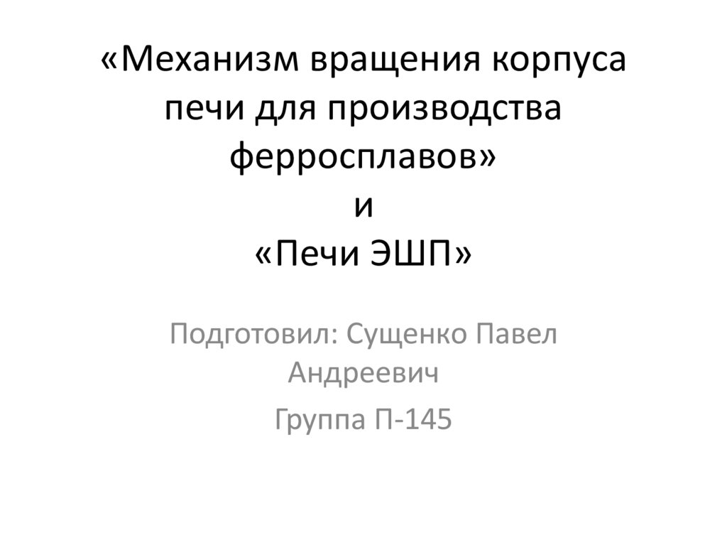 1. «Механизм вращения корпуса печи для производства ферросплавов» и «Печи ЭШП»