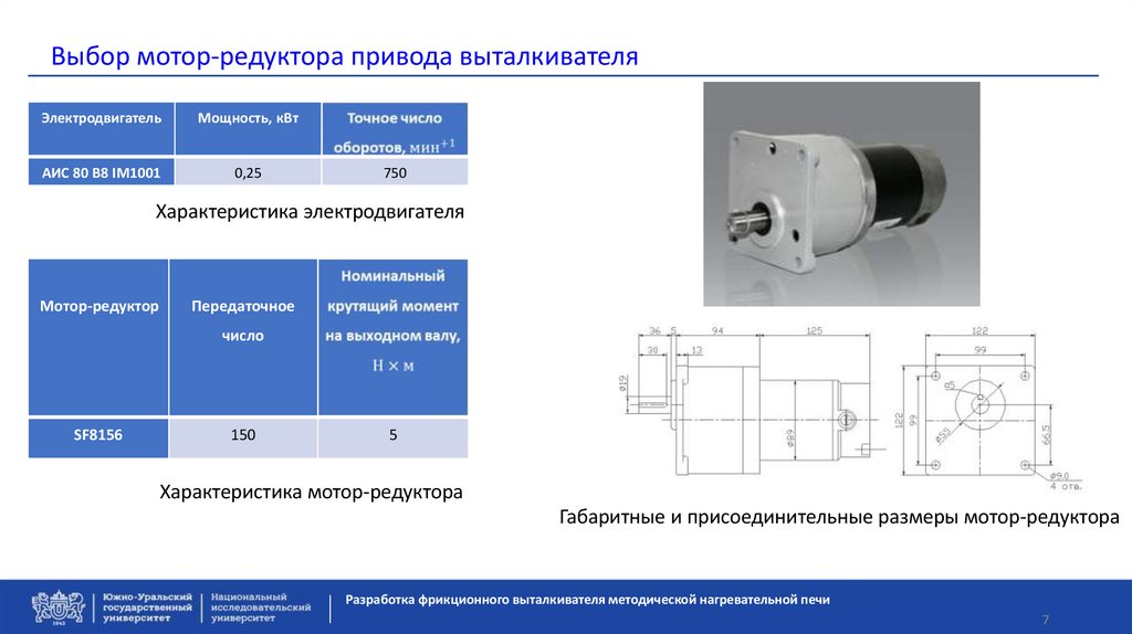 Выбор мотор-редуктора привода выталкивателяЭлектродвигатель