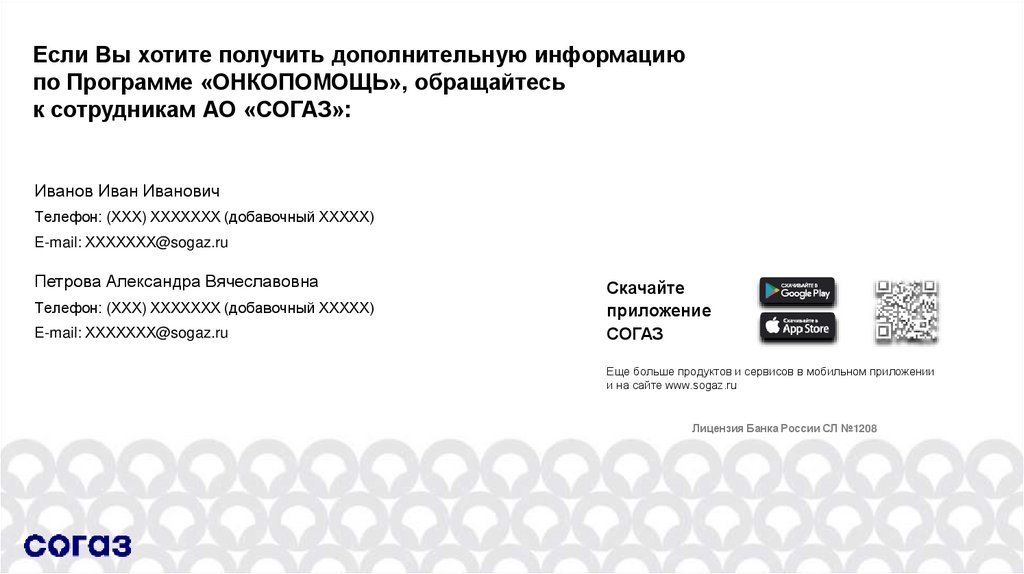 Если Вы хотите получить дополнительную информациюпо Программе «ОНКОПОМОЩЬ», обращайтесь