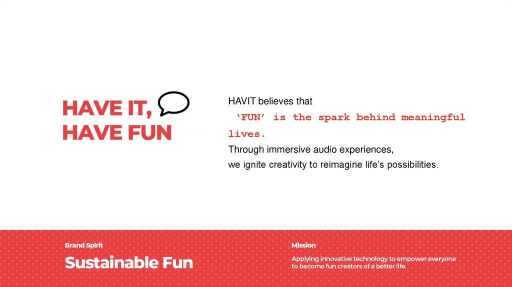 HAVIT believes that ‘FUN’ is the spark behind meaningful lives. Through