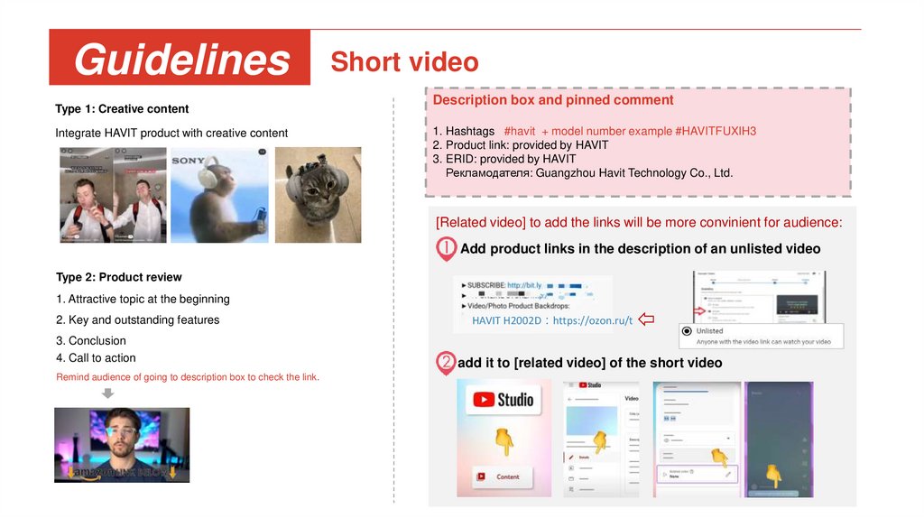 Добавьте ссылки на продукт в раздел «Связанные видео» короткого видео.