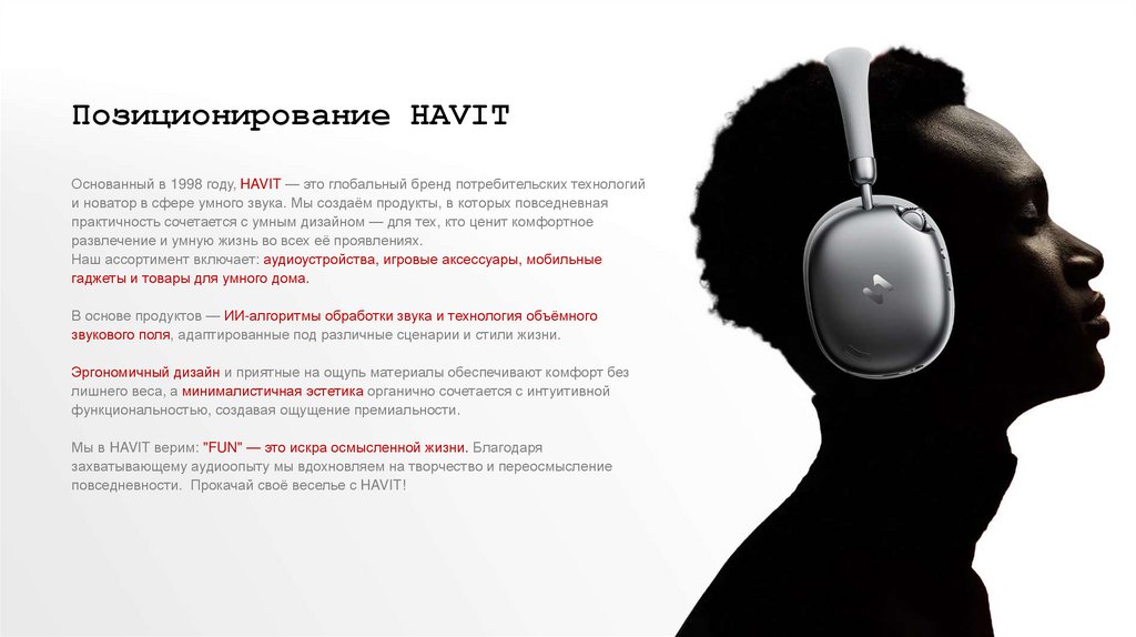 Позиционирование HAVITОснованный в 1998 году, HAVIT — это глобальный бренд потребительских технологий