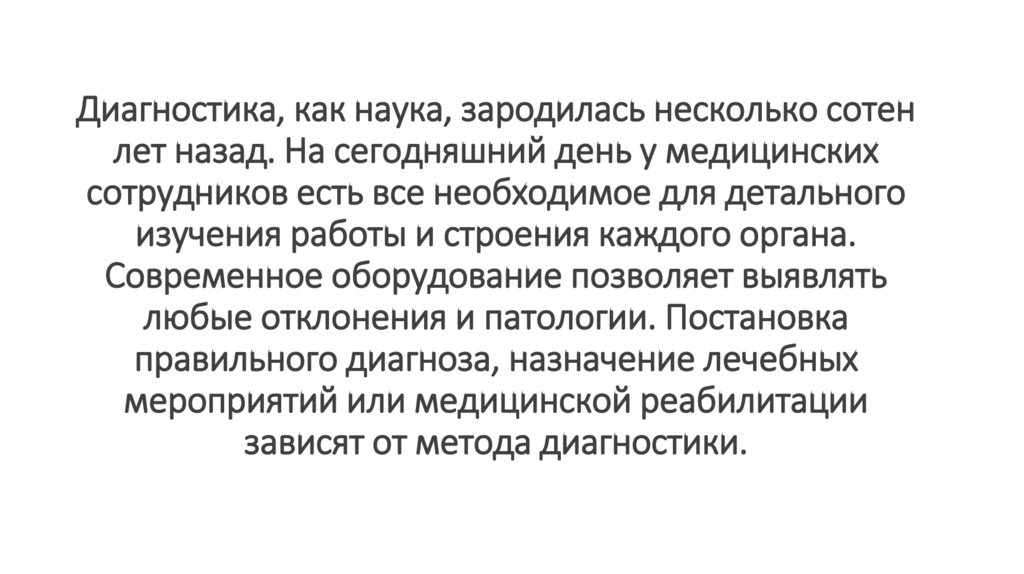Диагностика, как наука, зародилась несколько сотенлет назад. На сегодняшний день у медицинских