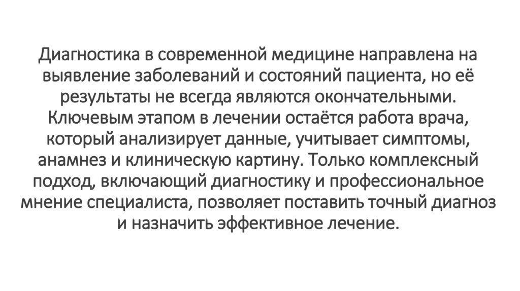 Диагностика в современной медицине направлена навыявление заболеваний и состояний пациента, но её