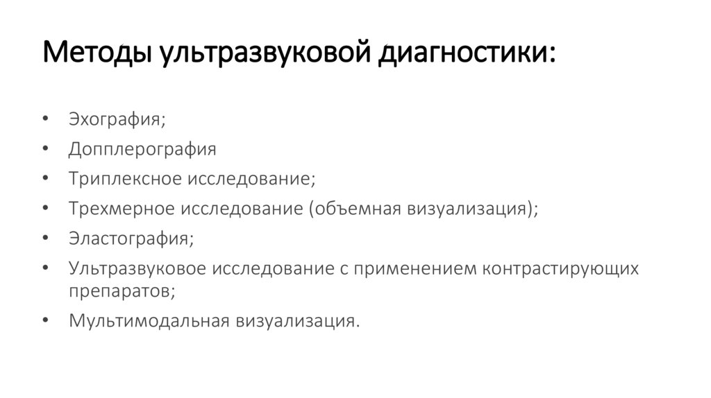 Методы ультразвуковой диагностики:Эхография;