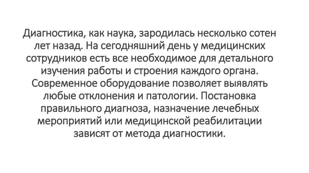 Диагностика, как наука, зародилась несколько сотенлет назад. На сегодняшний день у медицинских