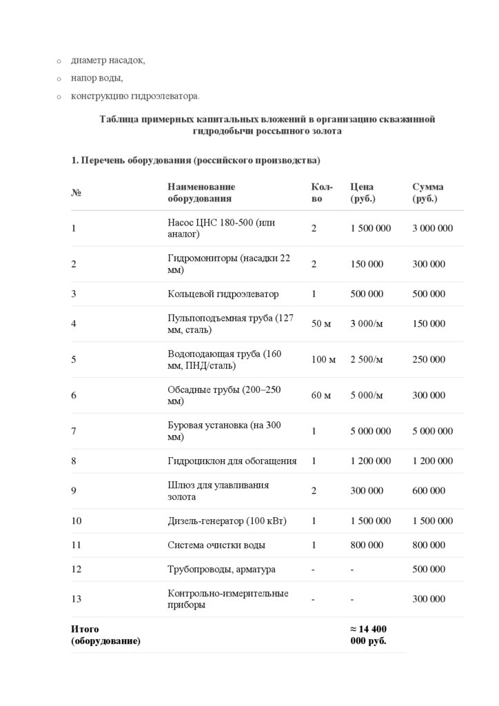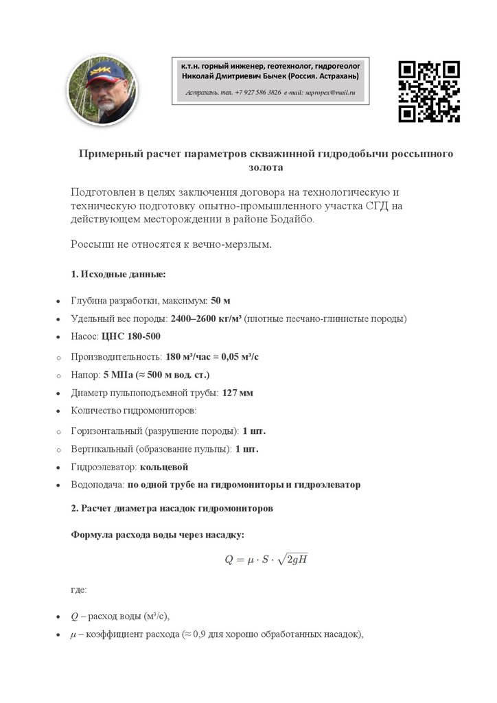 Примерный расчет параметров скважинной гидродобычи россыпного