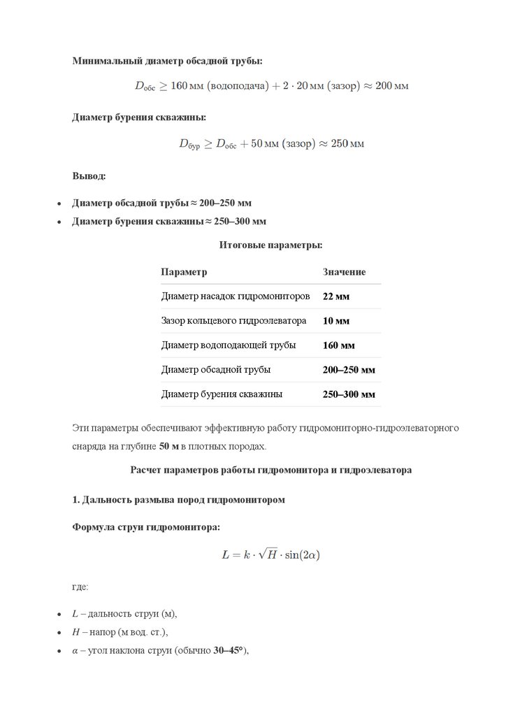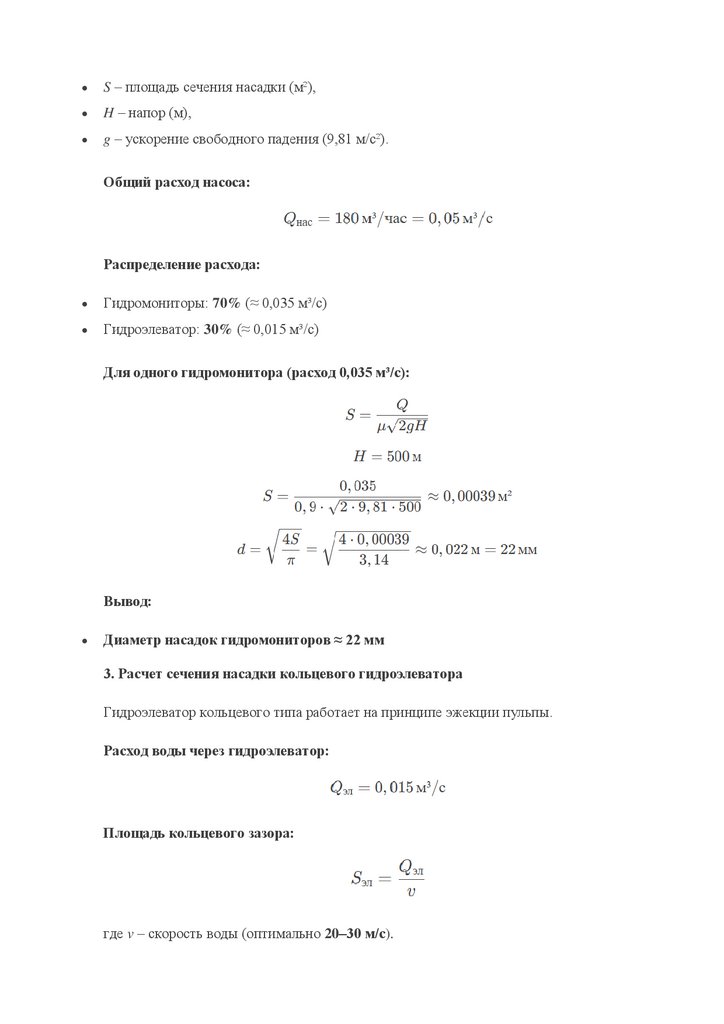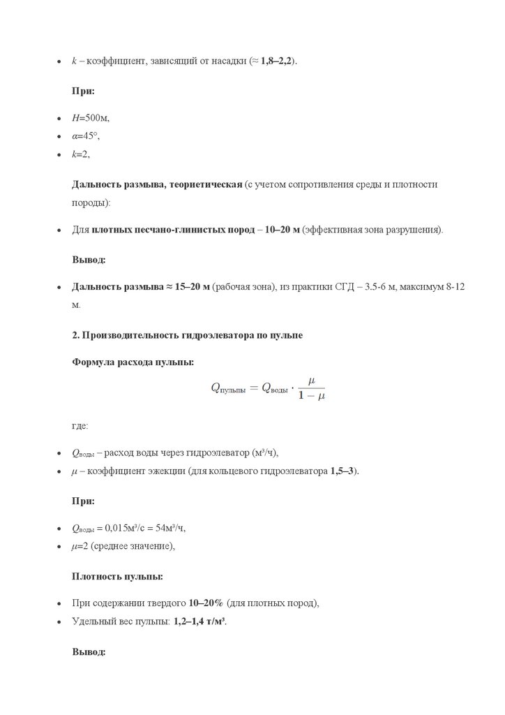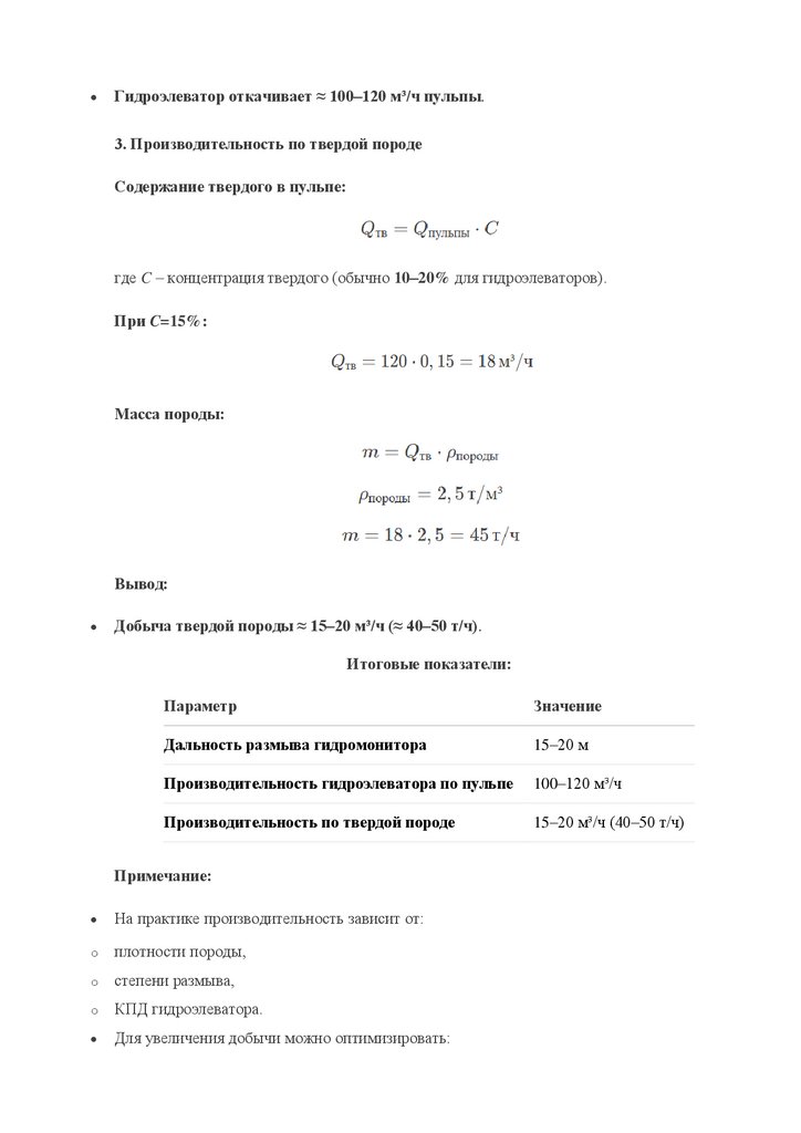 Эти параметры обеспечивают эффективную работу гидромониторно-гидроэлеваторного