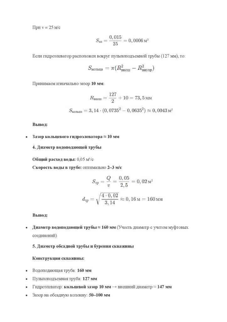 μ – коэффициент эжекции (для кольцевого гидроэлеватора 1,5–3).
