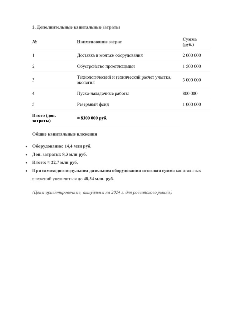 При самоходно-модульном дизельном оборудовании итоговая сумма капитальных