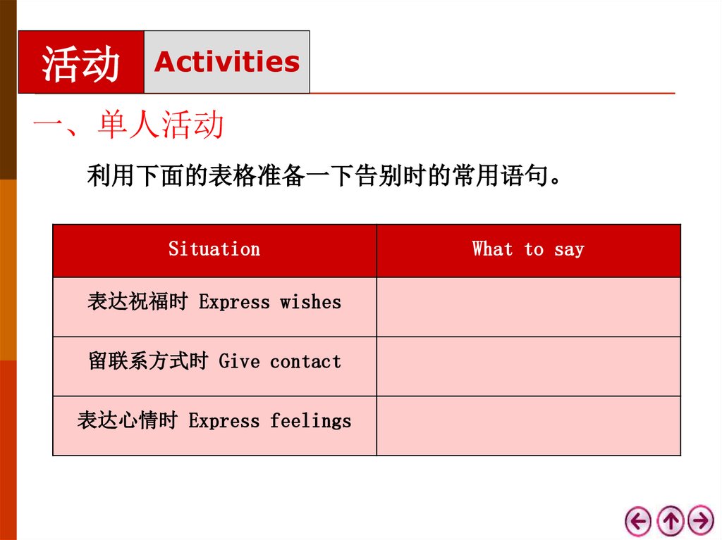 分别的时候你知道应该说什么了吗 利用下面的表格复习一下。