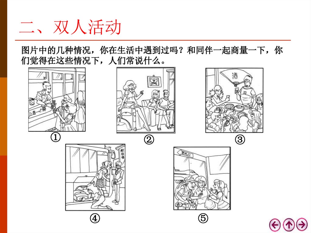 二、双人活动图片中的几种情况 你在生活中遇到过吗 和同伴一起商量一下 你