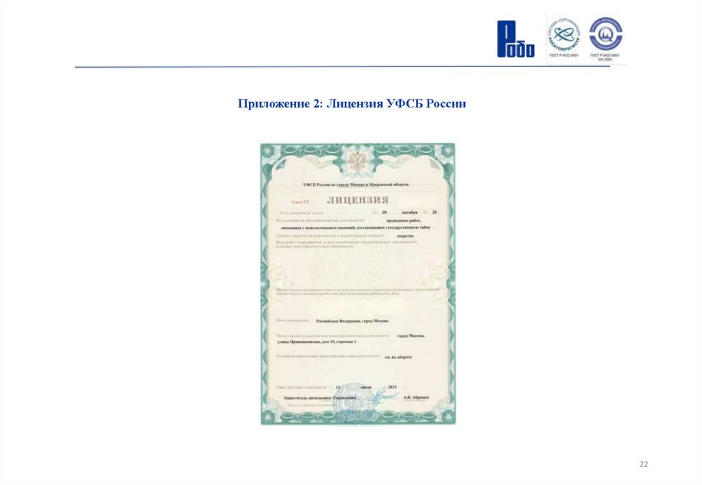 Приложение 2: Лицензия УФСБ России22