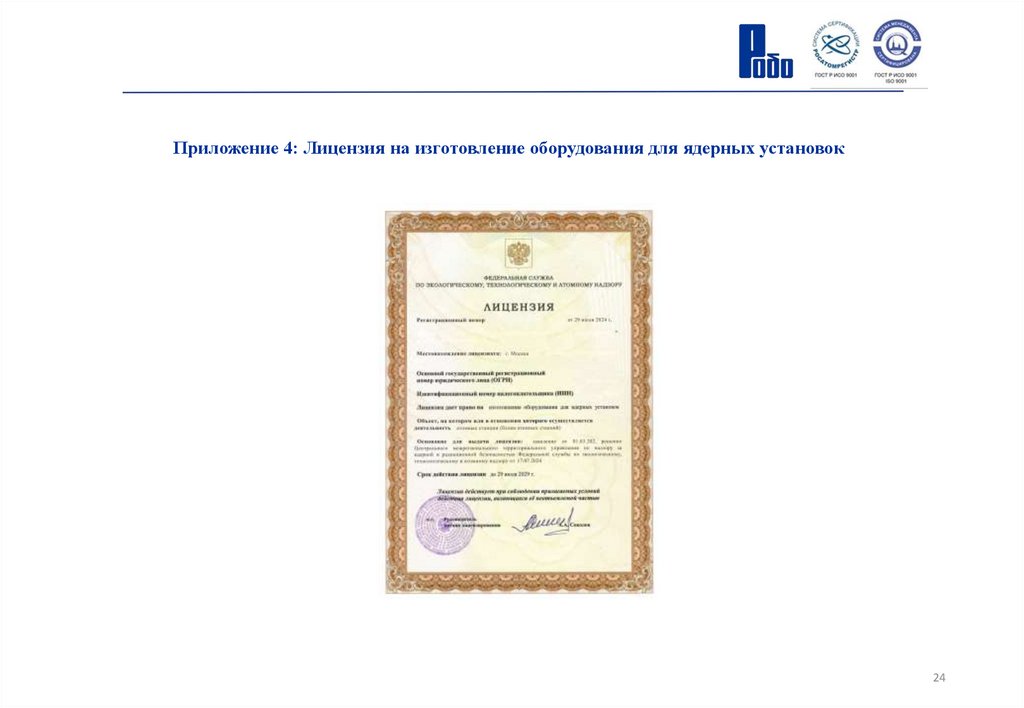 Приложение 4: Лицензия на изготовление оборудования для ядерных установок24