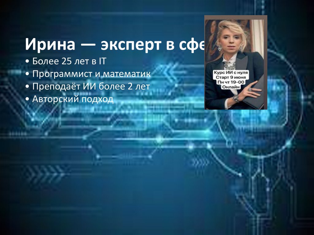 Ирина — эксперт в сфере ИИ• Более 25 лет в IT